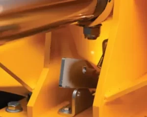 Ochranný kryt pro přítlačnou desku s válcem v přepravní poloze.