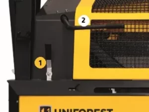 Stabilizátor klády 1. Rukojeť stabilizátoru klády. 2. Rukojeť pro ruční aktivaci/deaktivaci štípání klády.